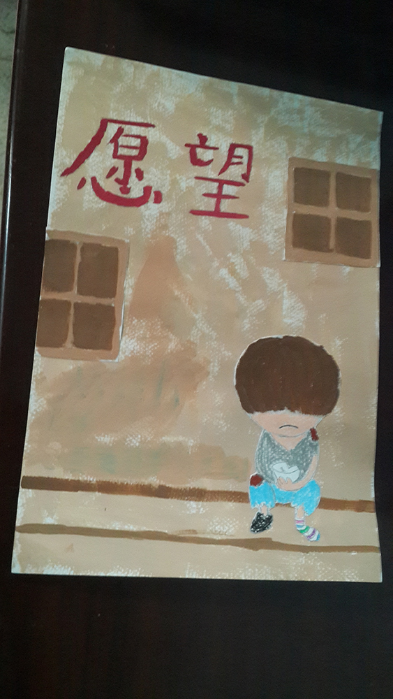 陪伴 Published 2016年9月26日 at 563 × 1000 in “绚彩心愿 你我共圆”柯尼卡美能达特殊儿童绘画手工大赛 作品名称:《陪伴》 简介:我想有个人陪伴着,想和小伙伴们一起,想和老师一起,想和爸爸妈妈在一起。 作者:甘焕浩 指导老师:余淑虹