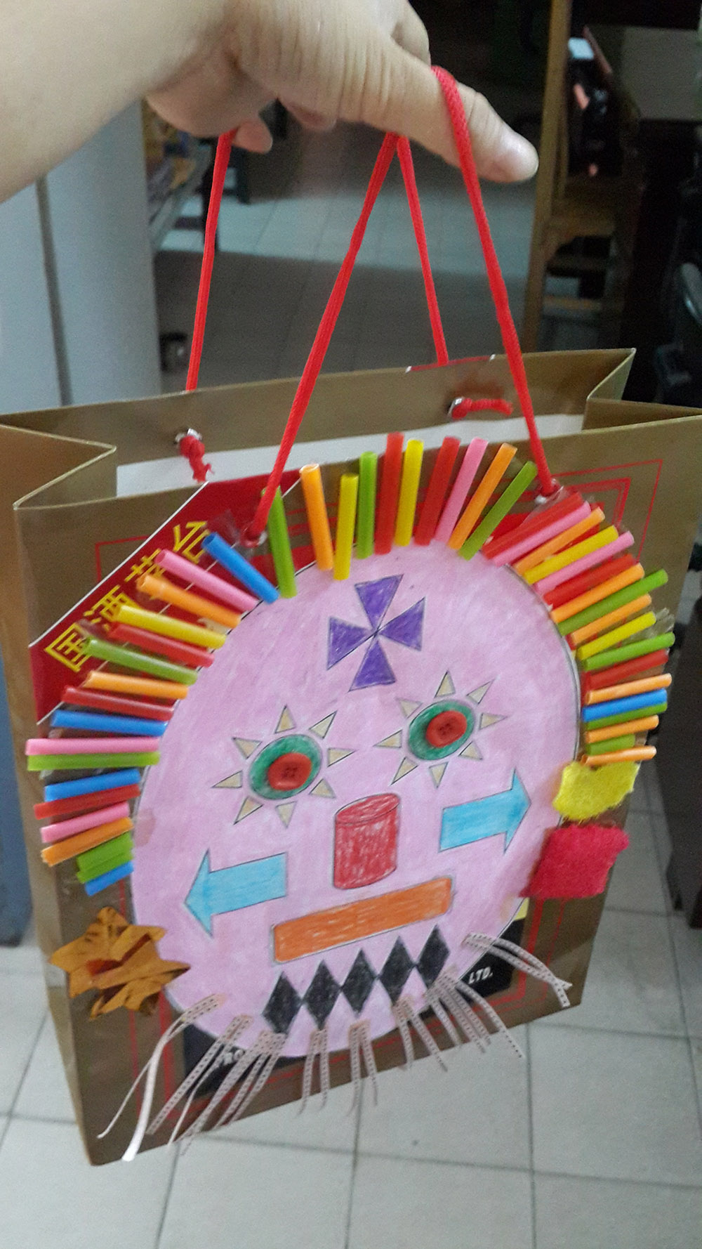 个性纸袋 Published 2016年9月28日 at 1000 × 1778 in 柯尼卡美能达-彩色梦想,放飞未来特殊儿童绘画手工大赛 二、 作品名称:个性纸袋 作 者:陈静文 指导老师:黄彩秒 作品简介:妈妈喜欢漂亮的袋子,我想设计很多漂亮的袋子,在母亲节,在妈妈生日,在感恩节……在美丽、特别的日子里当礼物送给我的妈妈。妈妈,您辛苦了,谢谢你!我要当你的“最美袋子”设计师!